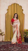 Elegant Cream Floral Saree with Mustard Yellow Blouse – Festive & Party Wear With Miror Work border